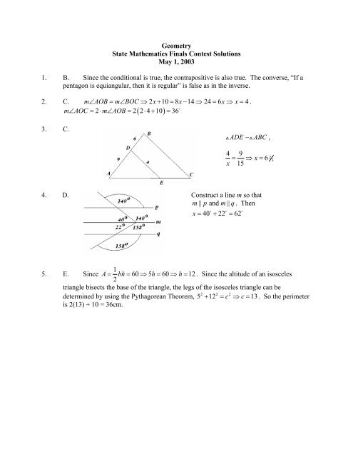 Geometry State Mathematics Finals Contest Solutions May 1 2003 1